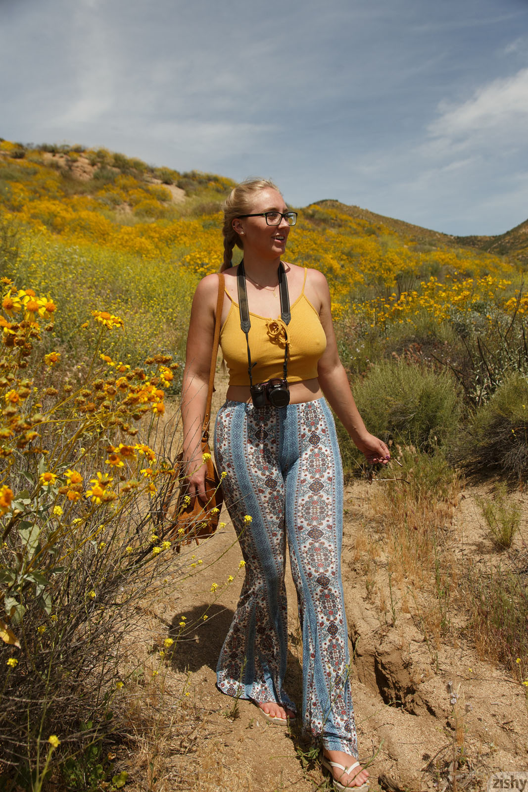 Harley Woodburn is a special kind of babe, she's perfect for Zishy. A self proclaimed nerd and boho babe, Harley loves to take pictures in nature, and she also likes to show off her natural assets as well, as she pulls down her leggings.