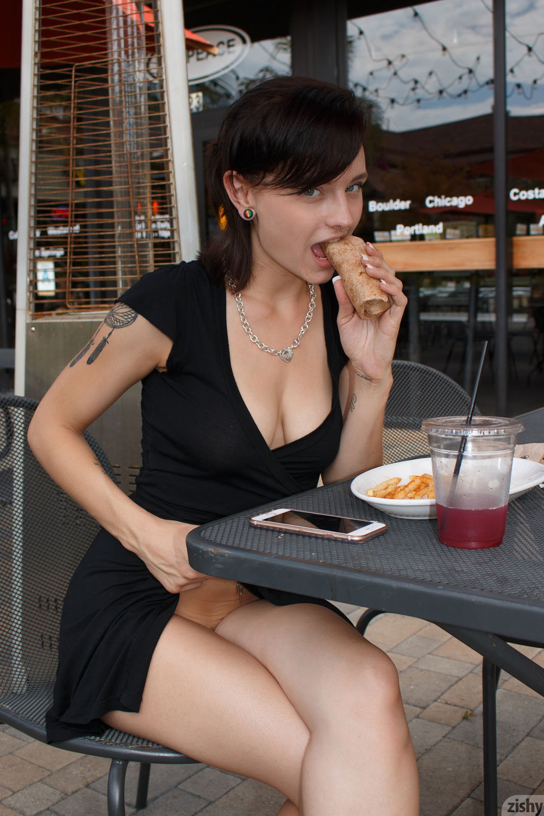 Kai Marley is a secret shopper, of the flashing persuasion. As it turns out, Zishy takes her to the outlet mall, and Kai decides that lifting up her dress in the costume store is the best way to get the attention of staff – and everyone else!