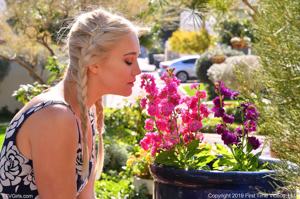 Putting her hair in pigtailed braids, she parades around in a cute summer dress giving us upskirt shots and panty views, then a striptease dance to music. Giving the Big Blue toy a blowjob, she fucks herself with it, pounding hard and fast. Notice how milky wet she gets, having it drip down her thighs!